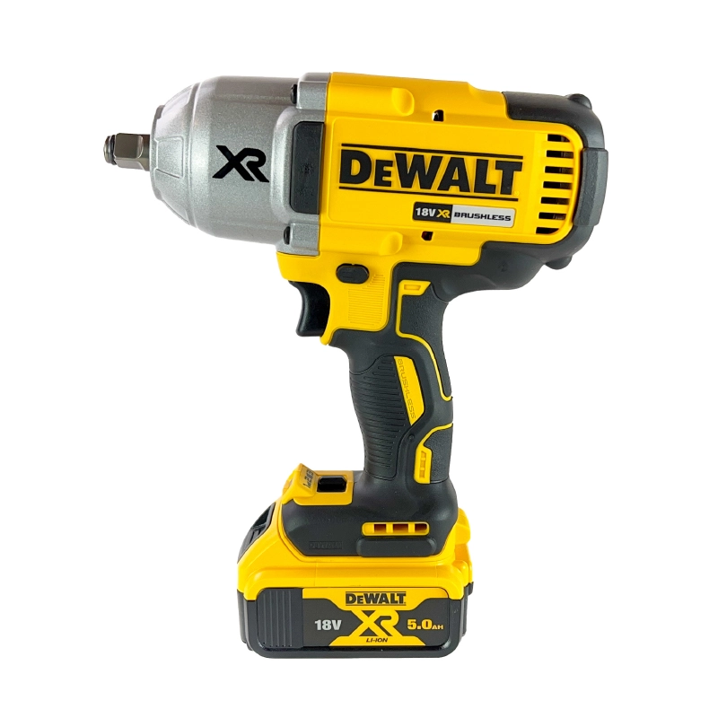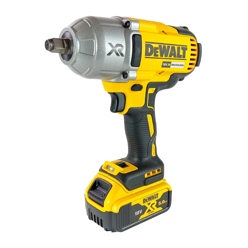 Naujos kartos 18V XR Li-Ion smūginis veržliasukis DeWalt su dideliu sukimo momentu, bešepetėliniu varikliu, dviem 5,0 Ah talpos akumuliatoriais, įkrovikliu bei lagaminu.